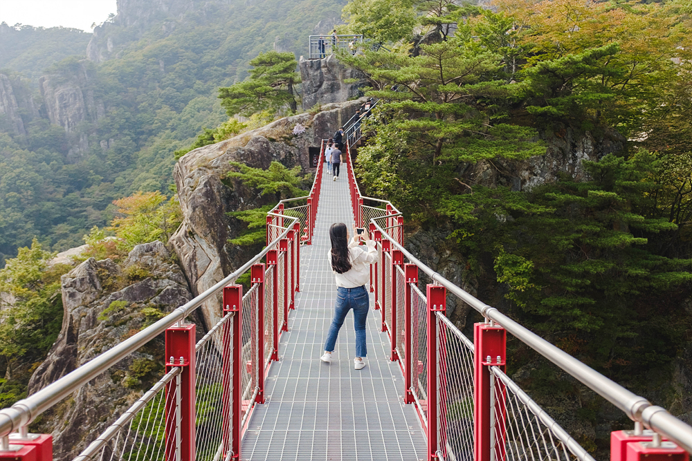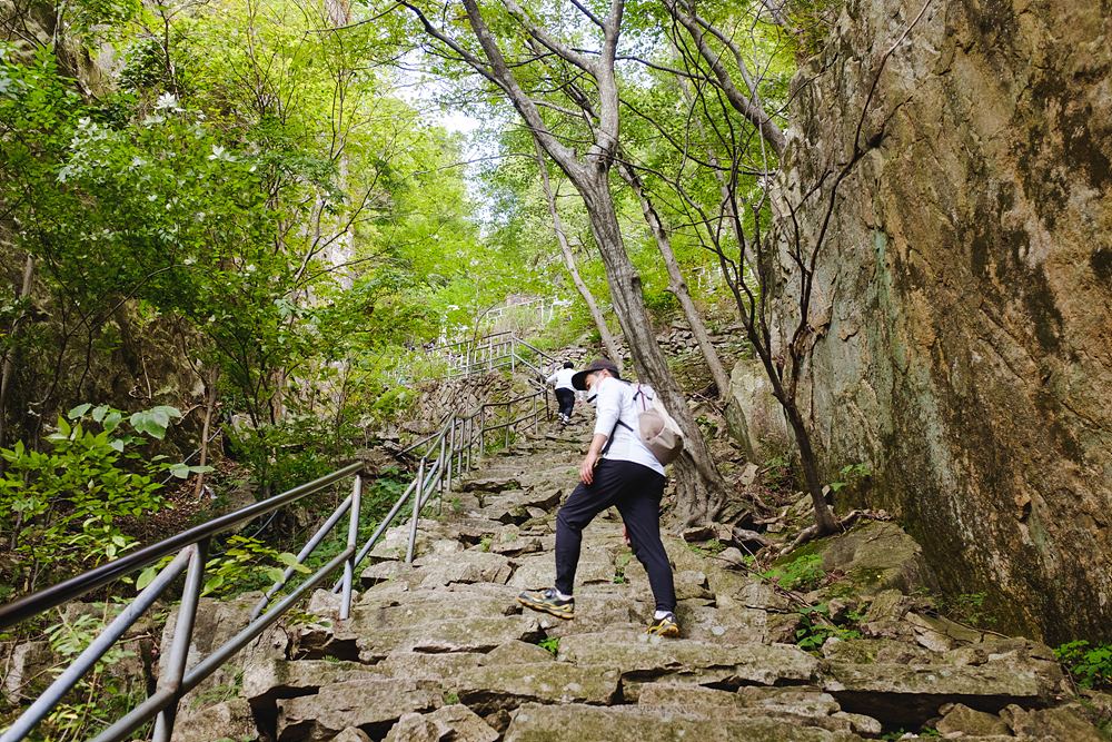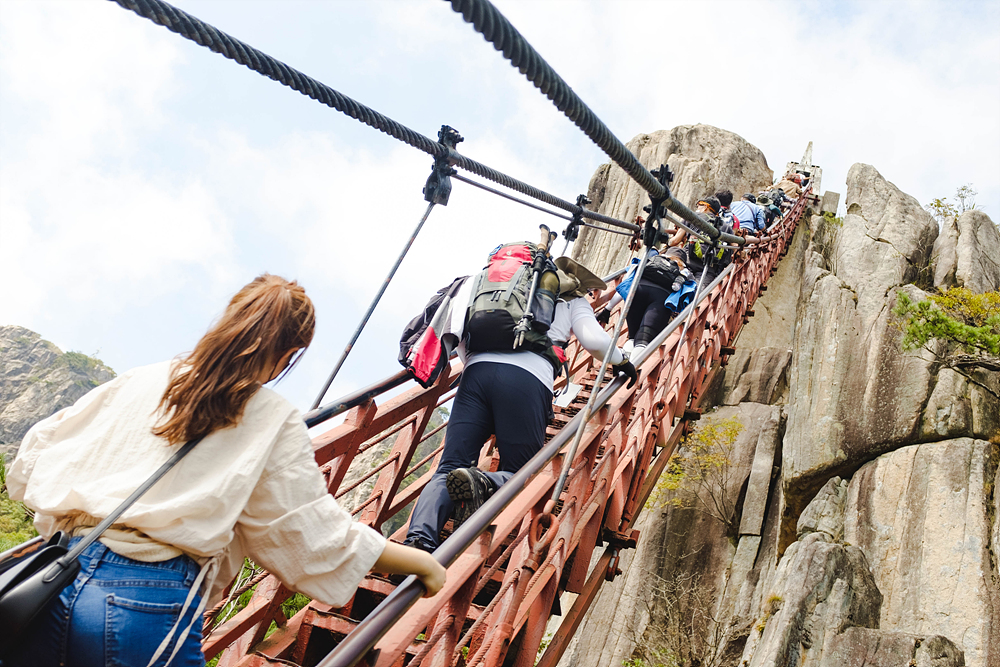 일단, 대부분의 등반로가 돌로 되어 있고, 경사가 가파르기 때문에, 초보가 오르기에 쉬운 산은 아니었다. 생각보다 힘이 많이 들었다. 하지만, 중간에 삼선계단이 있어, 아주 색다른 경험을 할 수 있었다. 여행하면서 심장이 쫄깃한 스릴을 느껴본 게 얼마만이었던가. 그리고 흔들다리도 또 하나의 볼거리였다.